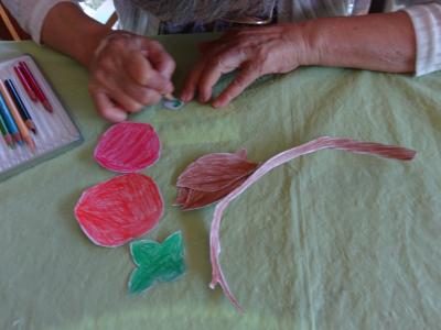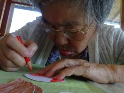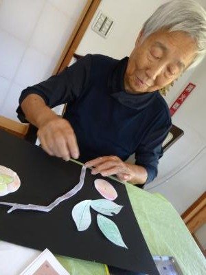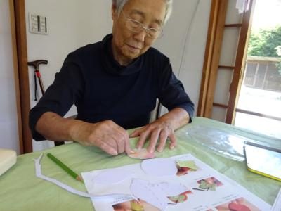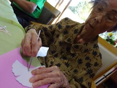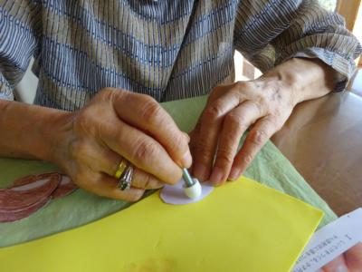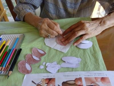 今度は道具を使って立体的にさせますうれしい顔手 (パー)