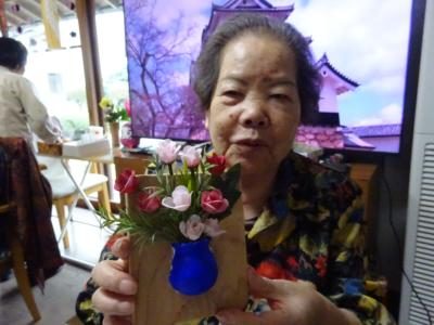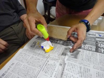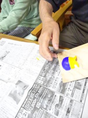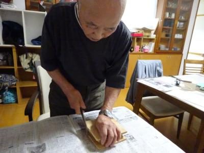 お昼休みに、お父様に手伝って頂いてレクで使う板のやすりがけ