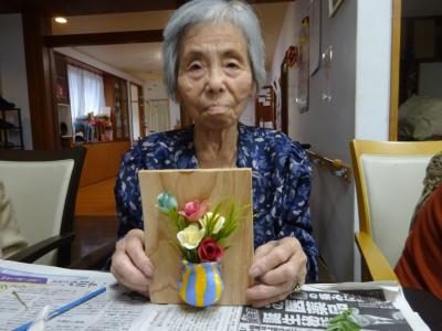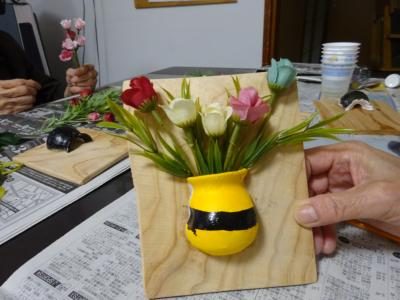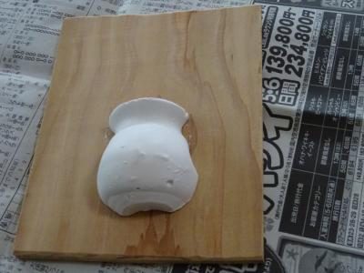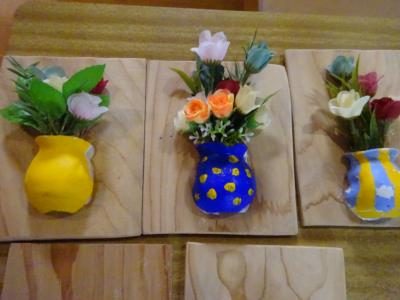 石膏で作った壺を使って壁に掛ける花飾りを作ろうと思います