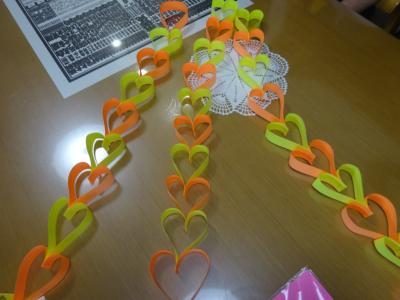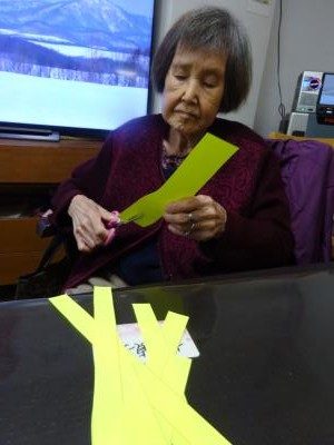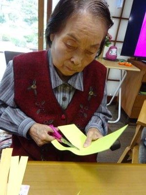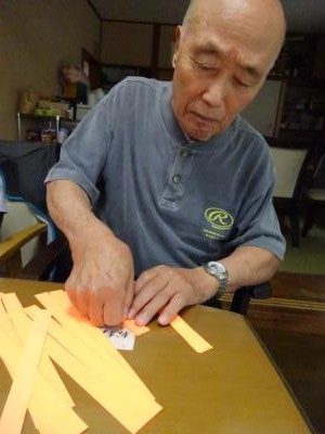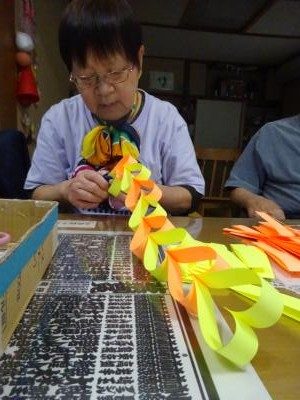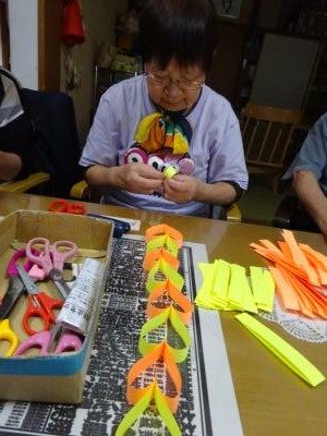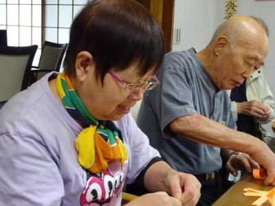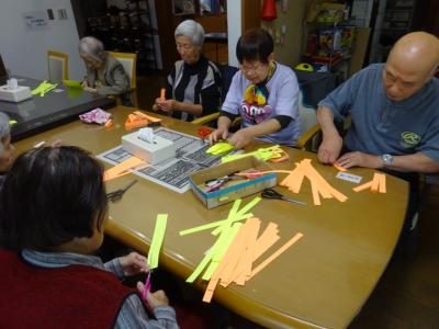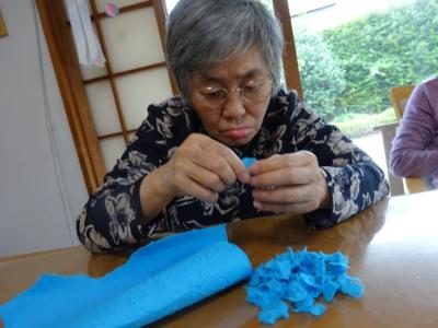 ちぎり作業同時進行今後のレクの準備も一緒に