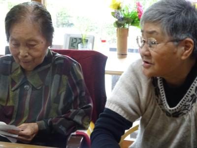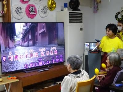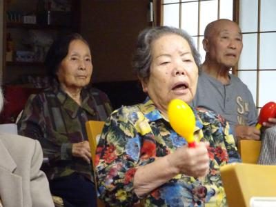 皆で、リズムを取りながら「星影のワルツ」・「鐘の鳴る丘」を