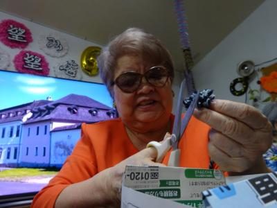 今日は、チャリティーの作品とハロウィンの飾りを作って