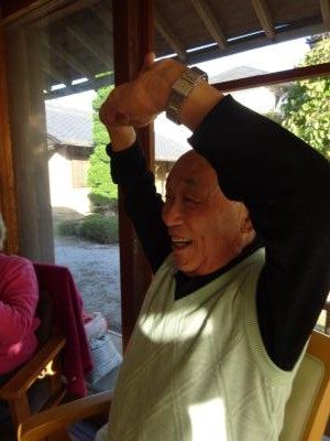 「ぼけたらあかん」の唱和の音頭をおとうさんに