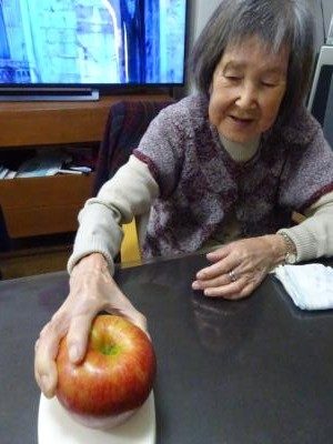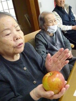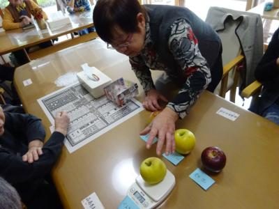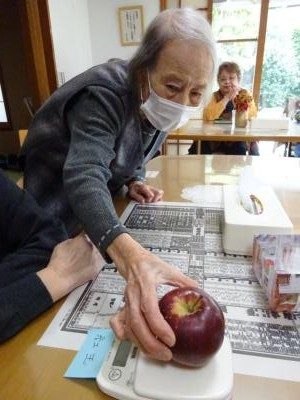 「このリンゴは大きいから450gくらいなんじゃない❔」