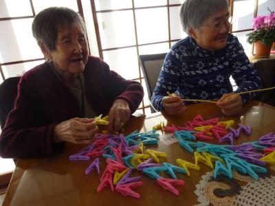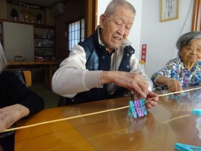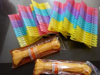 まずは・・・ロープに洗濯ばさみを端まで通していきます。