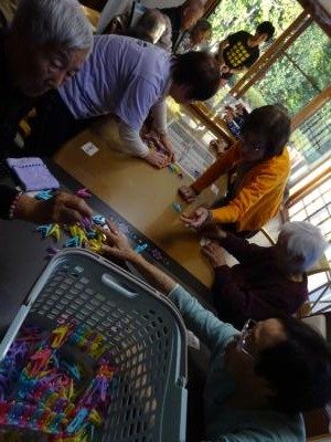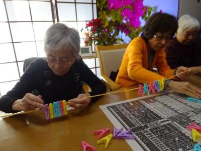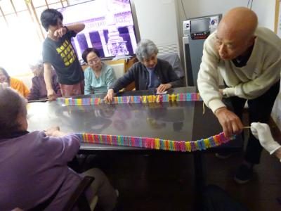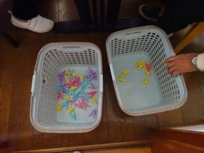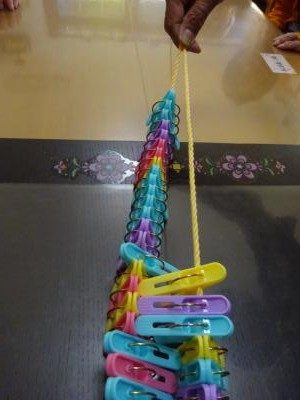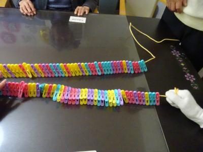色のついたテープに同じ色の洗濯ばさみを挟んでいきます
