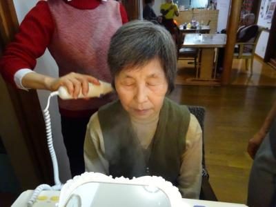 蒸気をお顔にあてながら器具を使ってのマッサージを