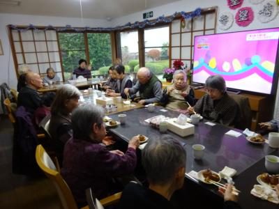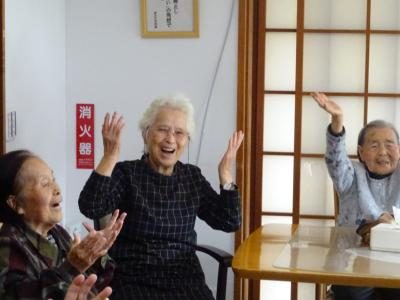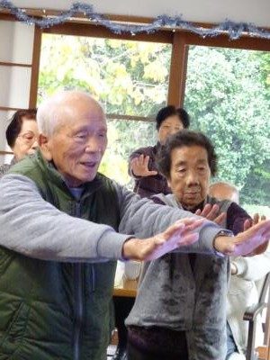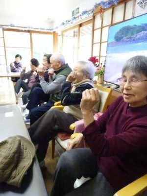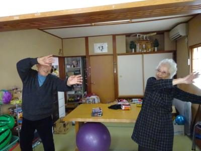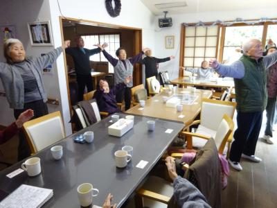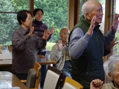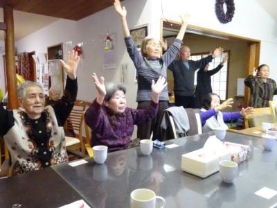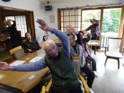 耳に残る楽しい歌に合わせての体操は自然と笑顔になるのでした