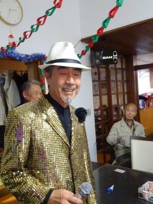 お父さんも三橋美智也さんの「古城」を熱唱中です