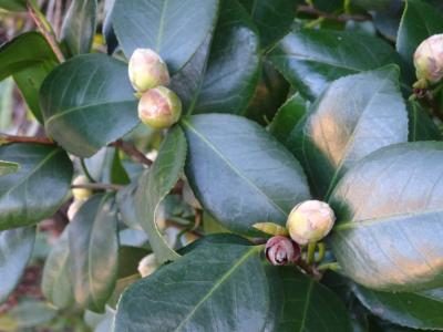 椿の蕾がこんなにも膨らんでいます