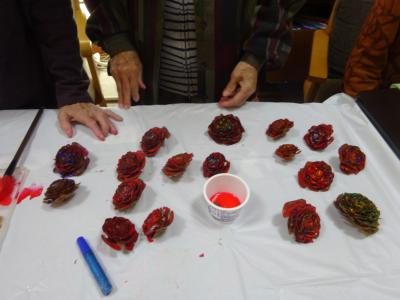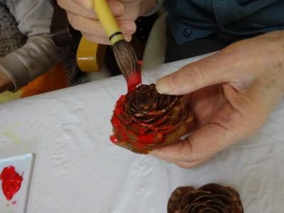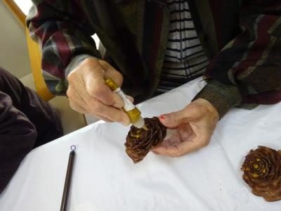 今日は松ぼっくりの色付けがメインとなりましたが
