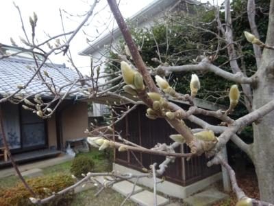 白木蓮も暖かい日に蕾を持ってしまいましたが・・・