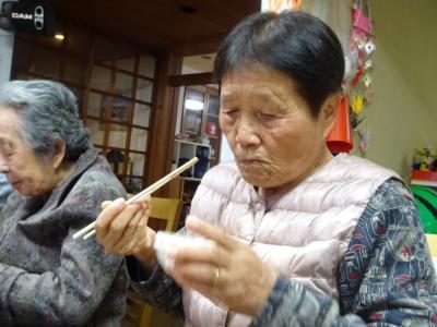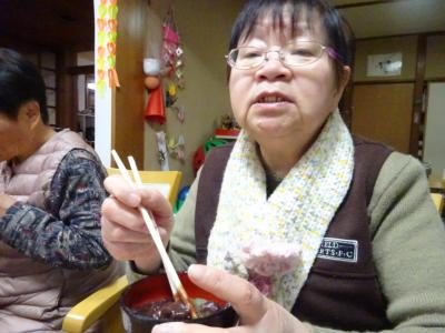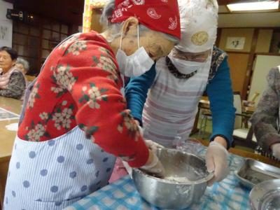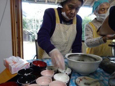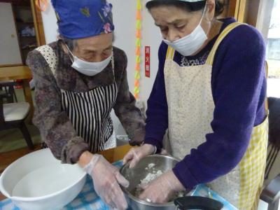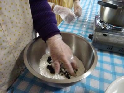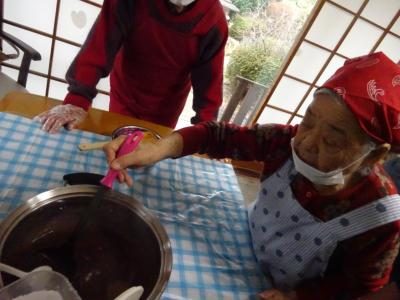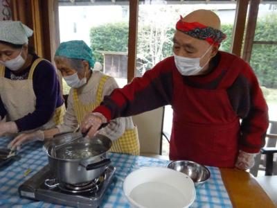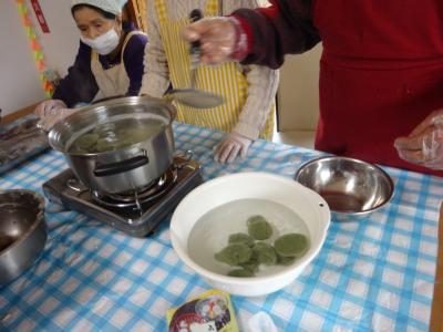 今日は、よもぎを使った白玉でお汁粉作りをしながら