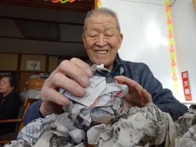 ↑新聞や広告がある程度丸められたら・・・