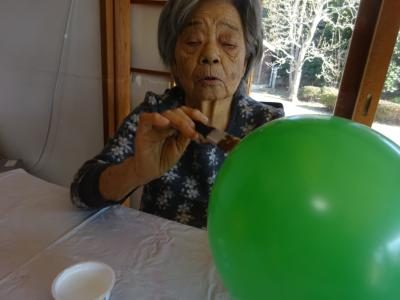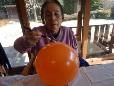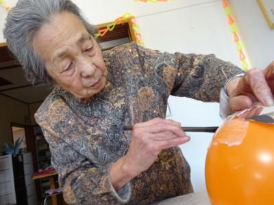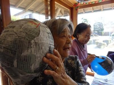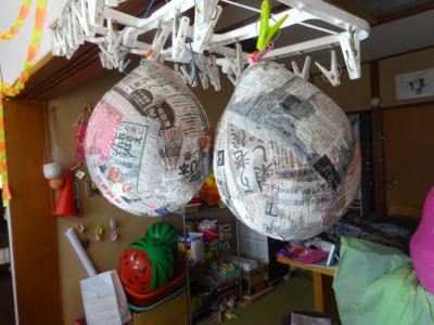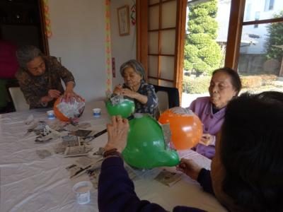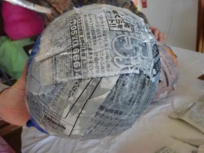 そして、こちらの方々には昼休みにスタッフが準備していた水で溶いたボンドを使って切った新聞紙を風船に貼り付けていく作業をお願いしました