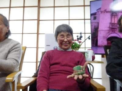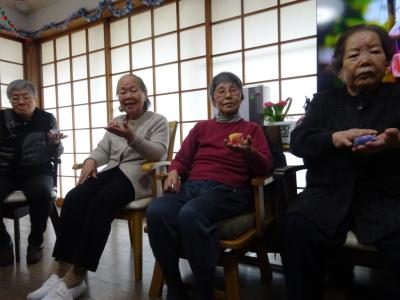 お手玉を使って・・・にぎにぎ・・・にぎにぎ・・・