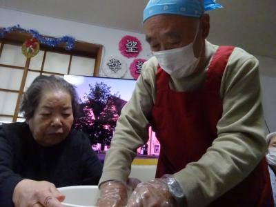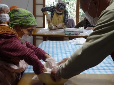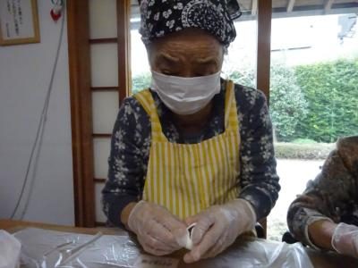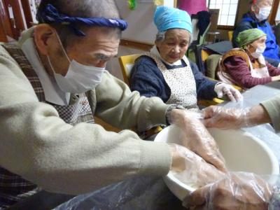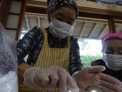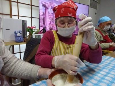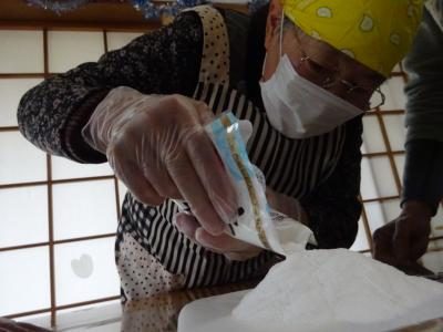 さっきの大和芋を上新粉と一緒に混ぜ込んでいきます