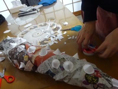 金棒に付ける「ゴツゴツ」皆で協力して作ります