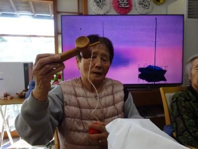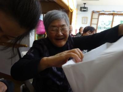 レクリエーションでは、大きな袋の中身を当てるゲームをしました