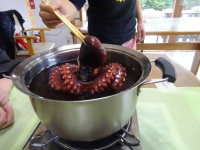 まずは・・・お茶でタコ🐙を湯がきます🍲