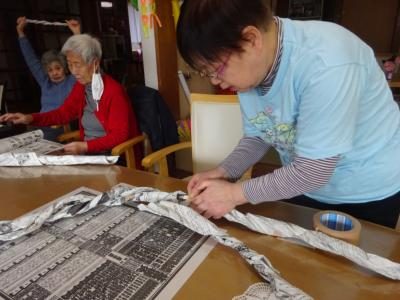 棒が出来上がったら、ガムテープでつなぎ合わせて