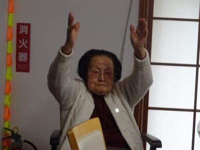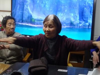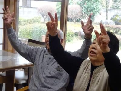 歌をうたって筋力強化もしました指でOK指でOK