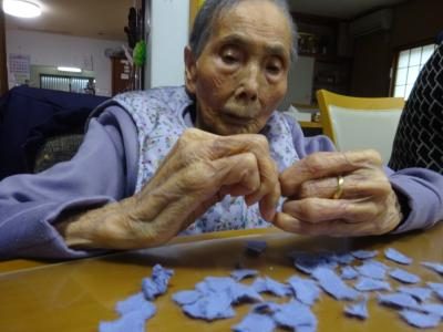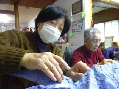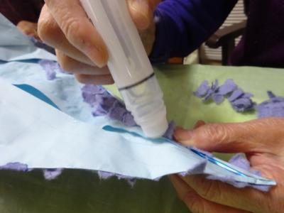 ちぎってある和紙を選別して、大きな和紙は細かくちぎり直してくださいましたウィンク