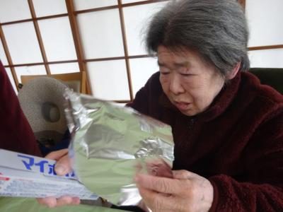 アルミホイルを巻きやすい大きさにお母さんが切り・・・