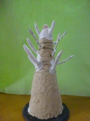 まずは、今回の作品のベースとなるメガホンを紙粘土で覆っていきます台風