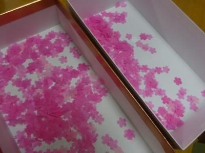 ↑型で抜いたお花紙は桜の花の形になっています桜