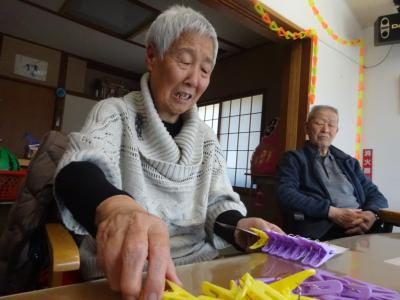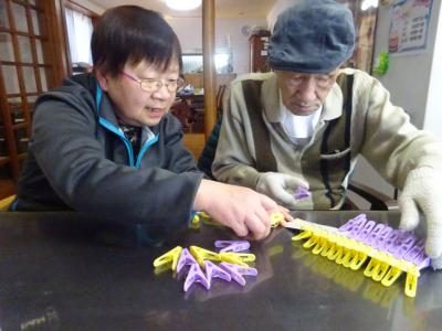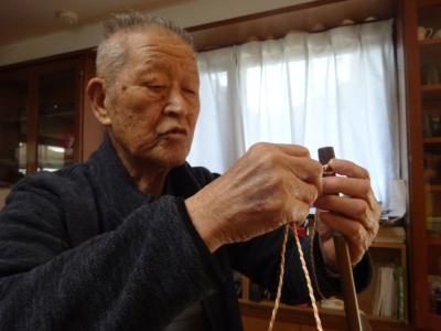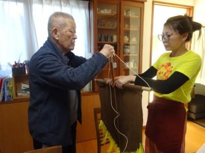 お父さん慣れた手つきで棒に紐を結んで下さっております