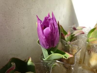 暖かい日が続き、水栽培中のチュウリップも綺麗に咲きだし