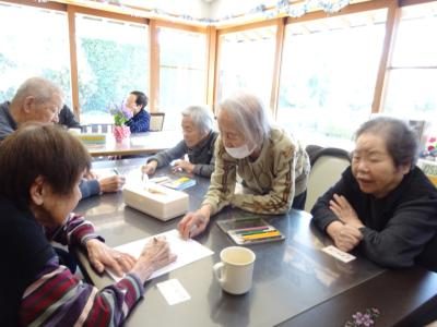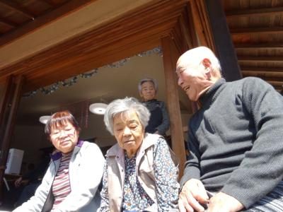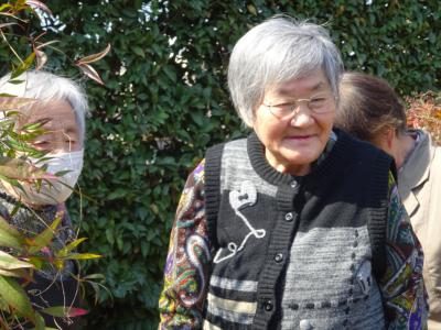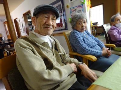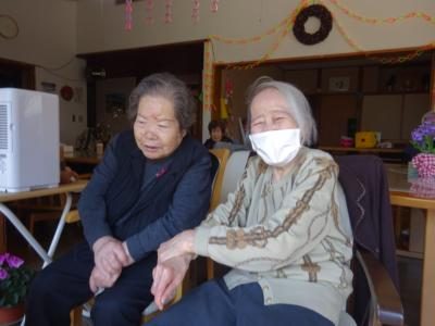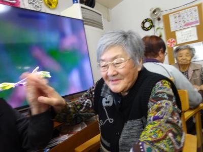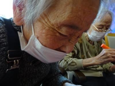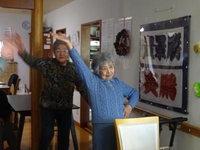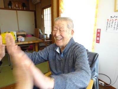 日向ぼっこの後は、二人一組になっての笑いの体操で・・