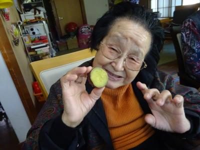 とっても美味しい焼き芋を焼いていただいたお礼にみんなで声を揃えて