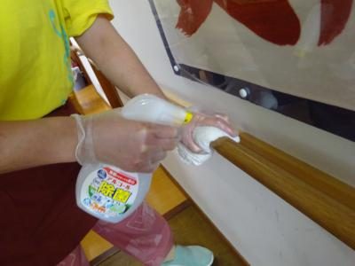 皆様が触れるところを拭き掃除し、消毒をしっかりと行います。