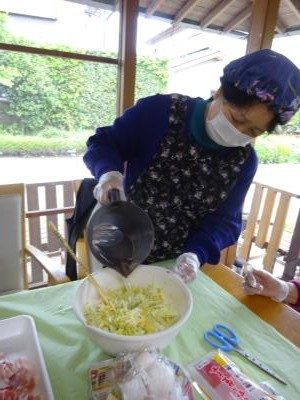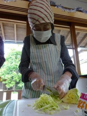 まずは、キャベツを刻んで・・・