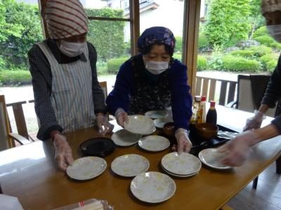 こちらでは・・・お皿を並べ始めましたよ
