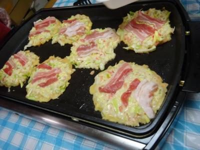 ホットプレートに並べながら焼きます