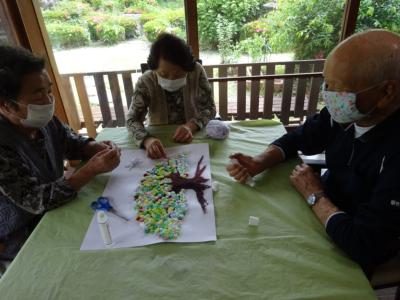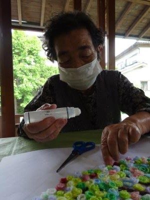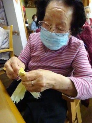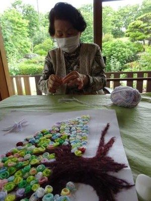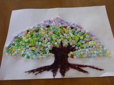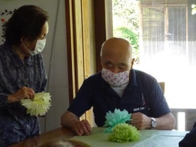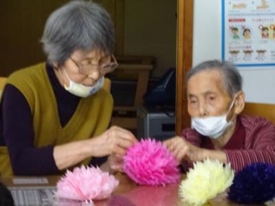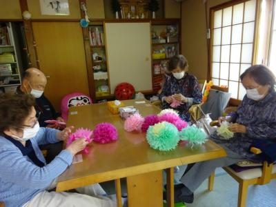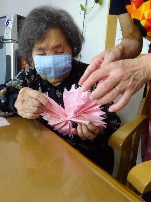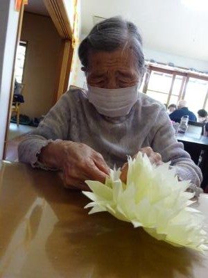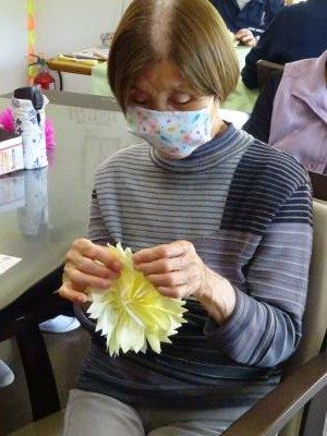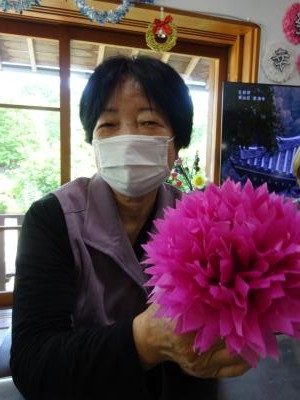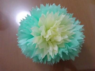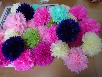 最後は↑同じ色を合わせてお花紙で更にミラーボールチックなお花に