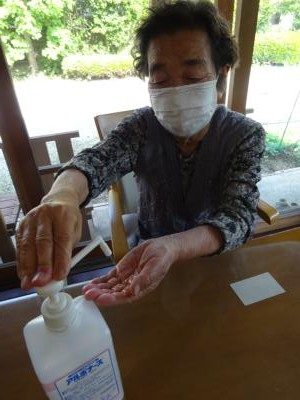 御来庵時のうがい手洗い・手指消毒・席についてからの念押し消毒