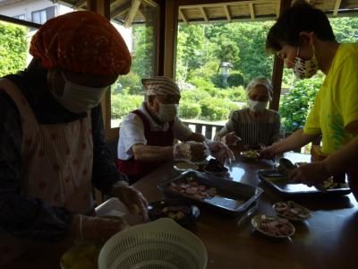 皆様に切っていただいた材料を分けて頂いて( ^ω^)・・・