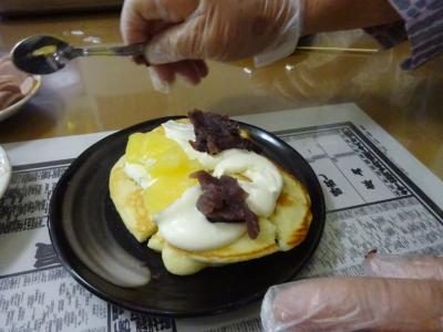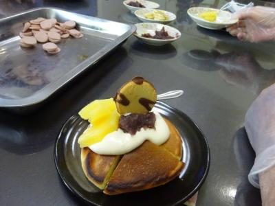 ホットケーキの上に、皆さんのお好きなようにトッピングしましょうヽ(^。^)ノ