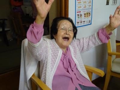 元気の良い声で万歳体操わーい (嬉しい顔)