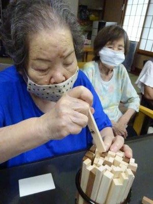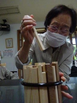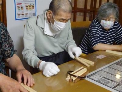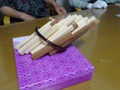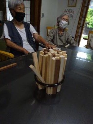 詰め詰めしたら今度は、順番に一本ずつ木を抜いていきます