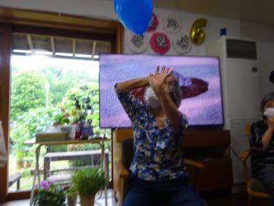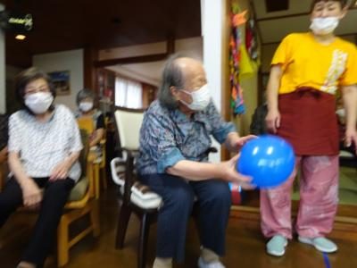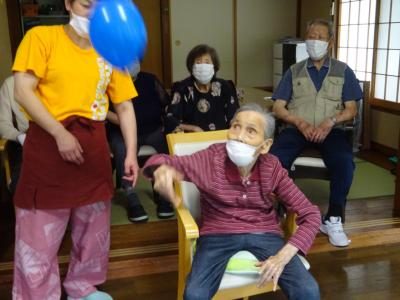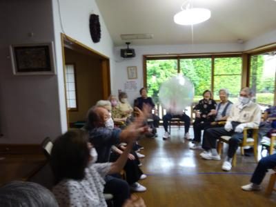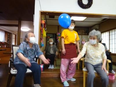 最後は、皆で輪になって風船も大きなサイズに切り替えて