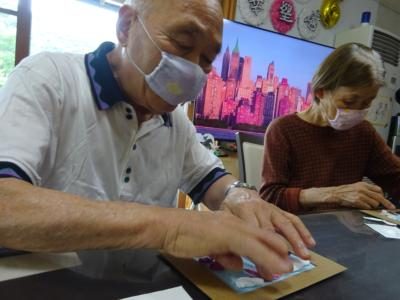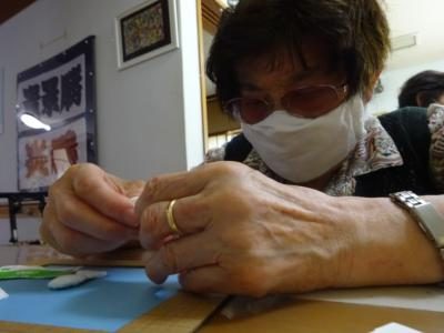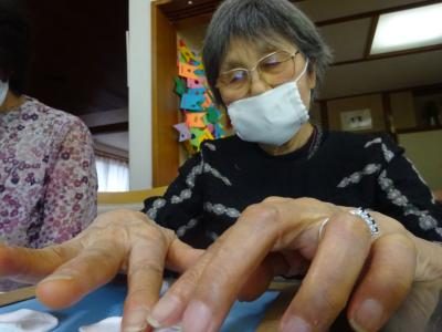 その後は、手にボンドを付けないように注意しながら貼って行きましょうね