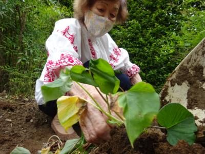 さつまいもと、ナスの苗を植えに行って参りました芽
