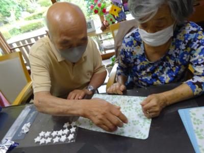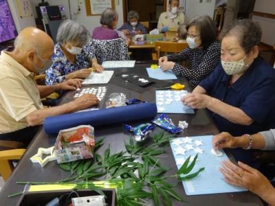 午後のレクリエーションでは、小さい七夕飾りを作りましょう(*´ω`)
