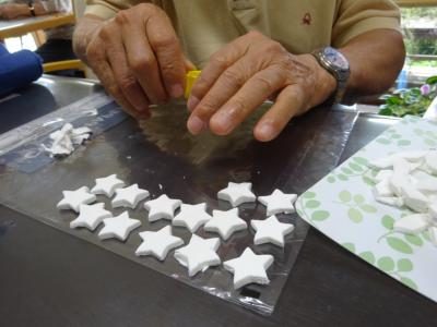 こちらでは、光る粘土を使って型抜きをして下さったり
