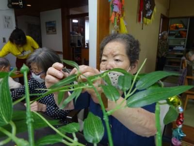 皆様が作って下さった飾りを作り笹に付けて行くと・・・